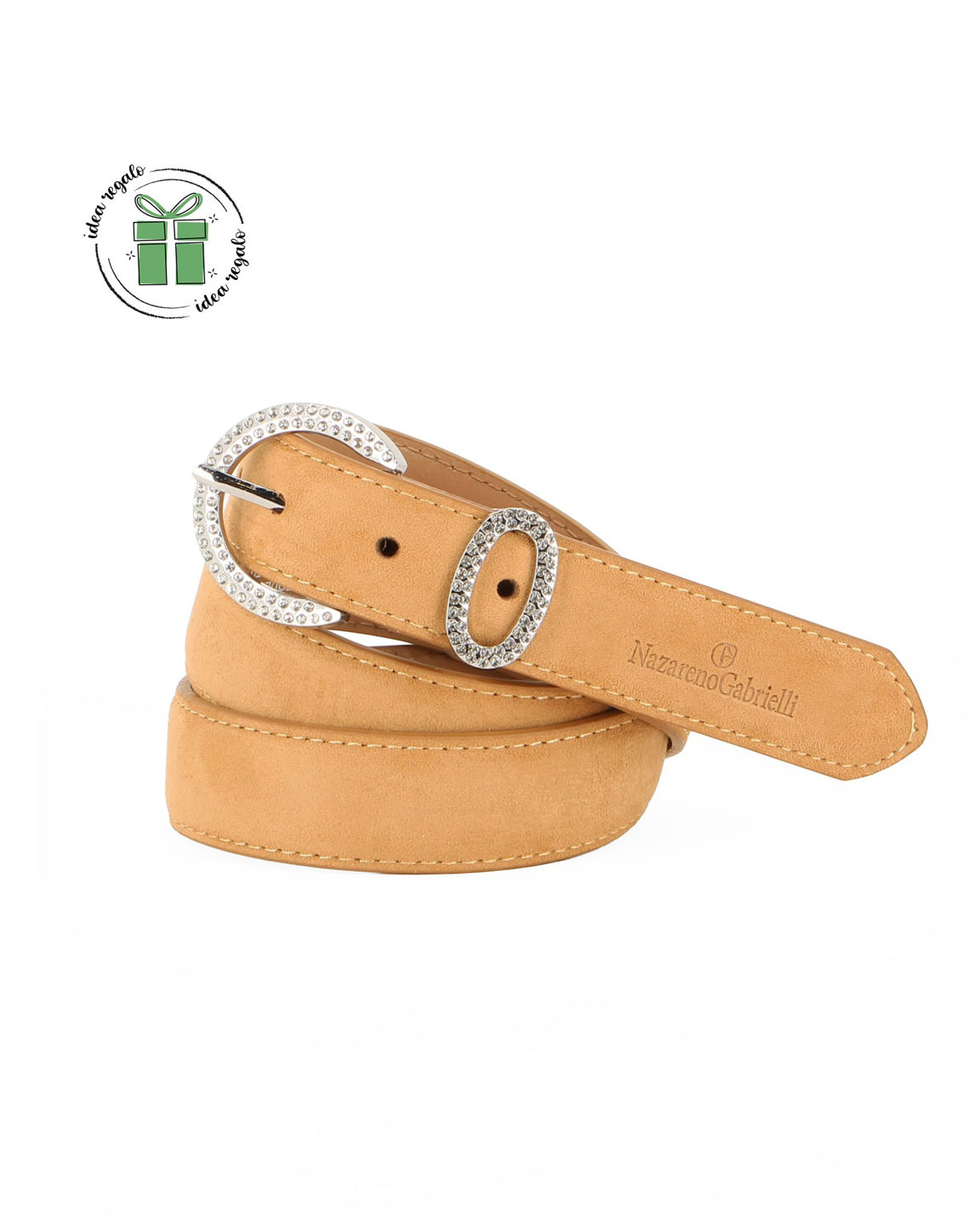 NAZARENO GABRIELLI - Cinta ocra scamosciata da donna con passante e fibbia in strass