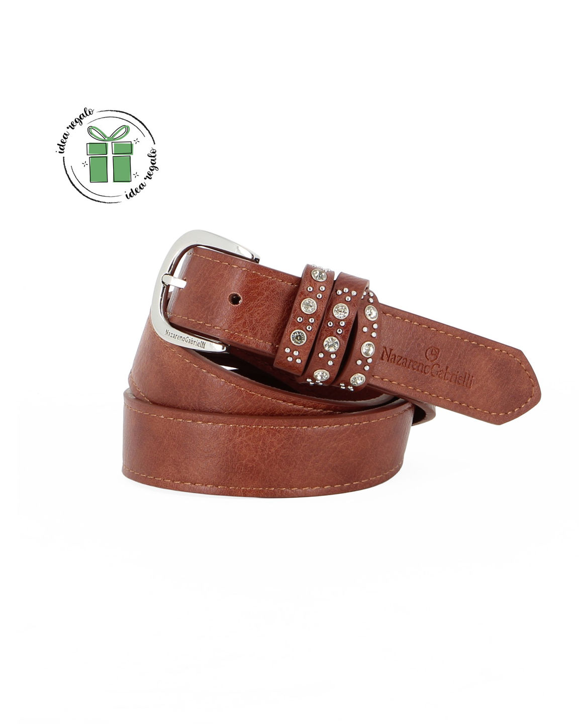 NAZARENO GABRIELLI - Cinta tabacco da donna con passanti con borchie e strass