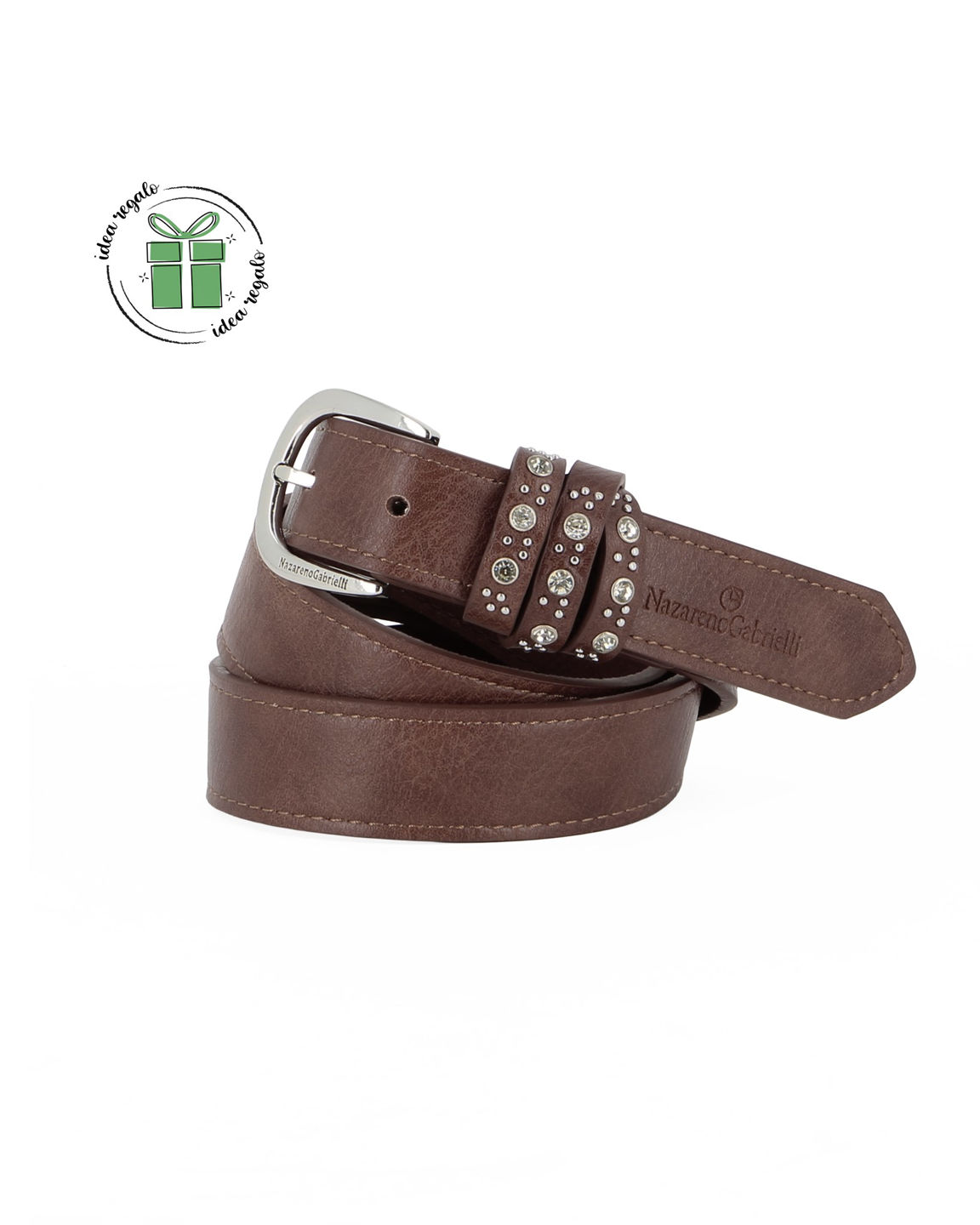 NAZARENO GABRIELLI - Cinta tabacco da donna con passanti con borchie e strass