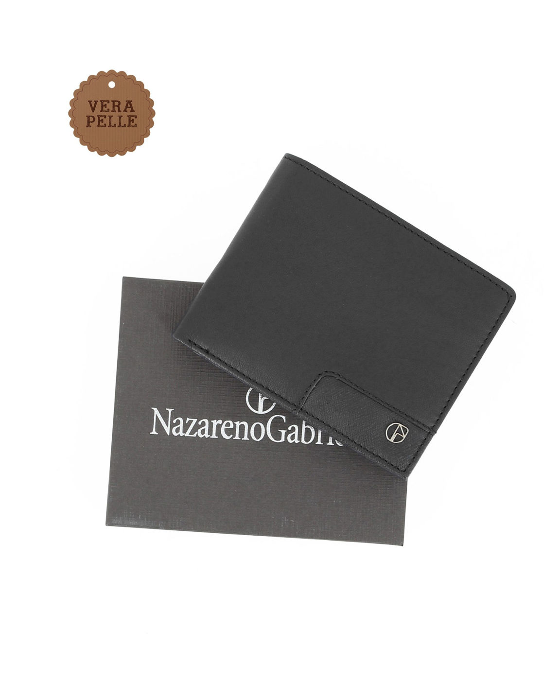 NAZARENO GABRIELLI - Portafoglio nero da uomo in VERA PELLE con ribaltina interna
