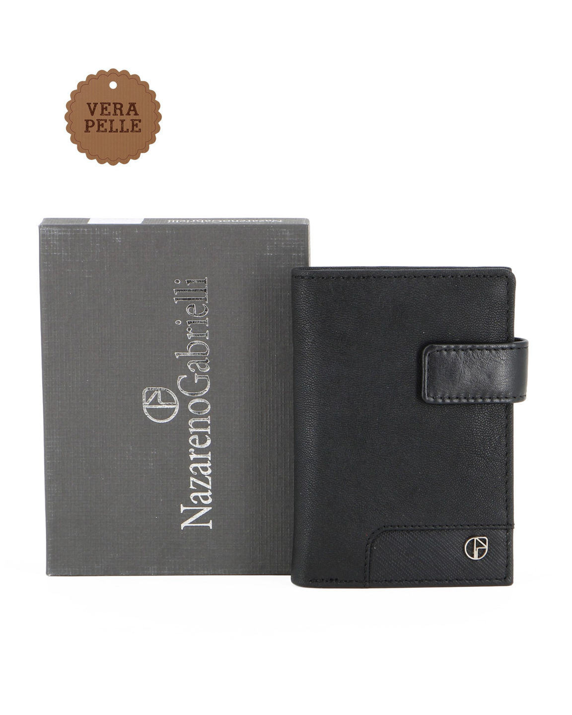 NAZARENO GABRIELLI - Portafoglio nero da uomo in VERA PELLE con taschino posteriore