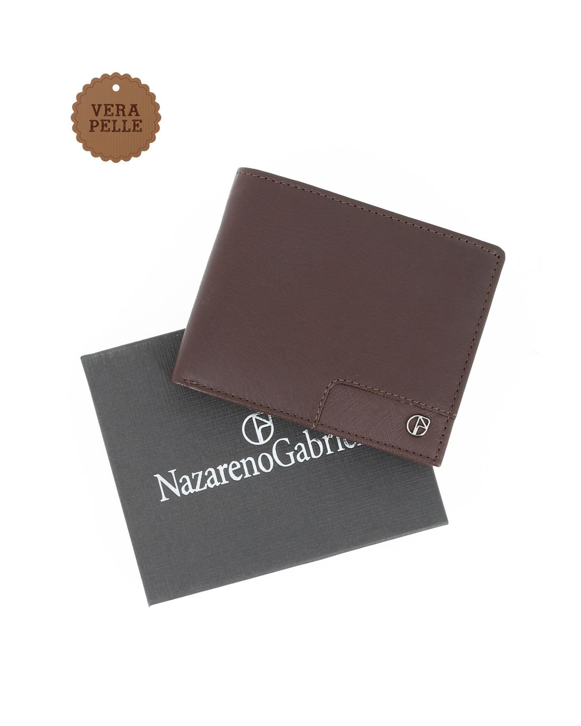 NAZARENO GABRIELLI - Portafoglio testa moro da uomo in VERA PELLE con ribaltina interna