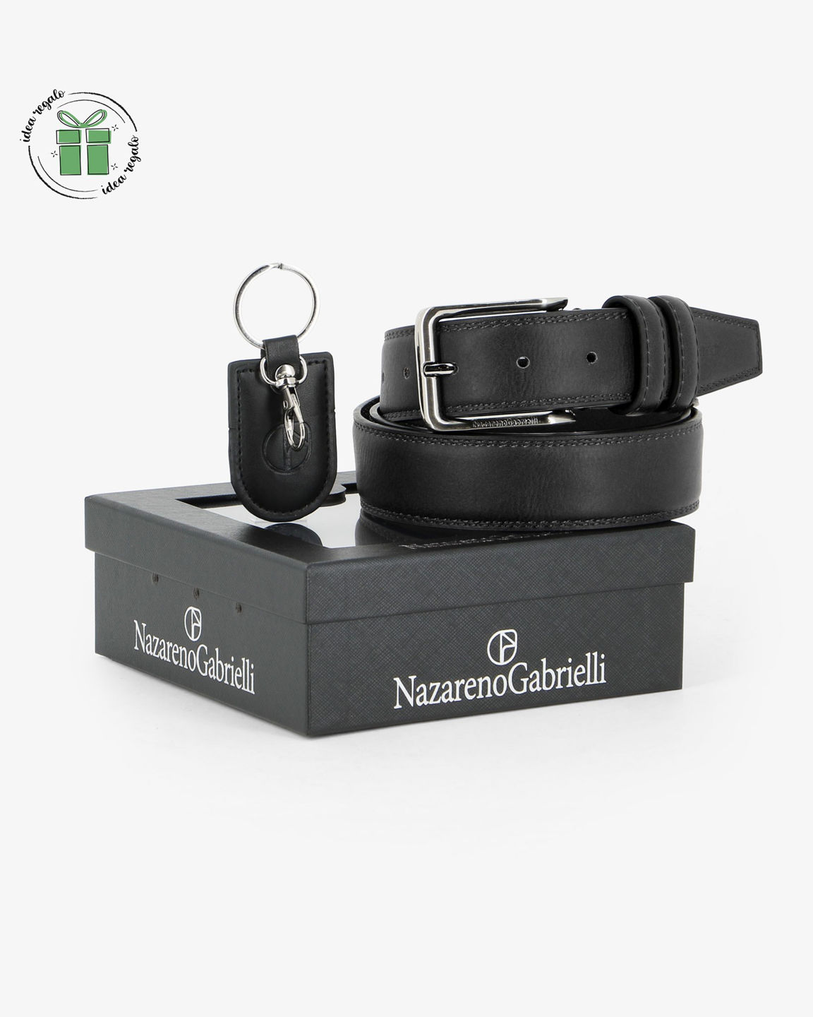 NAZARENO GABRIELLI - Set regalo composto da cintura e portachiavi nero