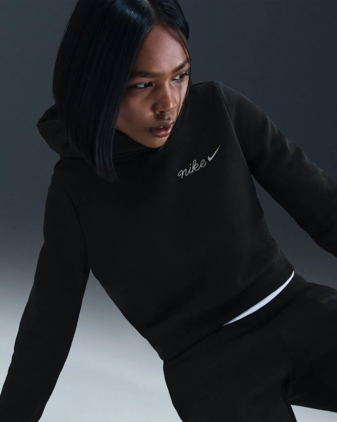 Realizzata in pile spazzolato di medio peso, questa felpa con cappuccio ? morbida e confortevole. La scritta in corsivo e la silhouette corta e aderente impreziosiscono questo stile classico.