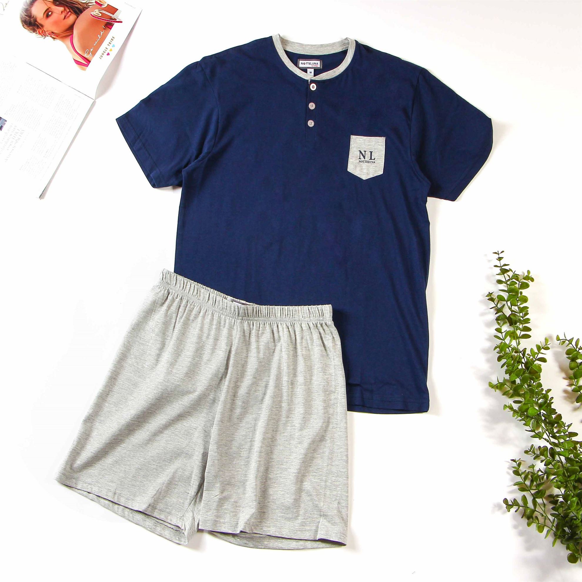 DETTAGLIO: PIGIAMA DA UOMO CON PANTALONCINO. MAGLIA CON COLLETTO SERAFINO E TASCHINO SUL DAVANTI. SHORT CON ELASTICO IN VITA .