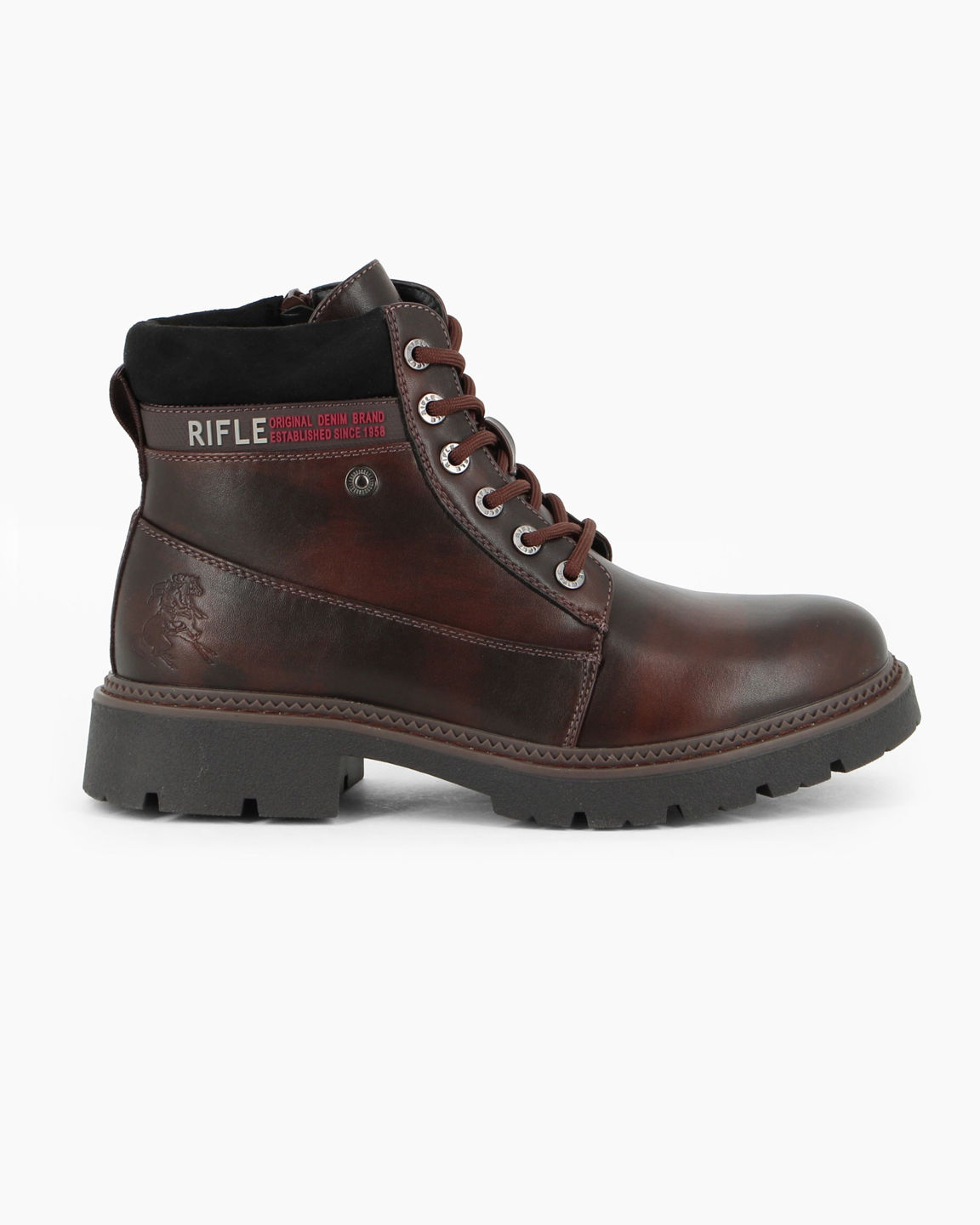 RIFLE - Scarponcino nero da uomo con lacci e zip laterale