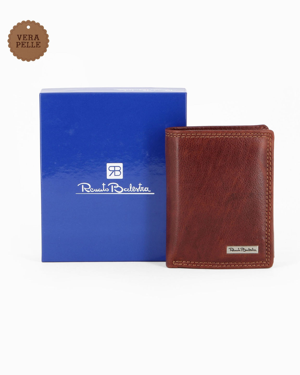 RENATO BALESTRA - Portafoglio cuoio in VERA PELLE da uomo con pattina e ribaltina interna