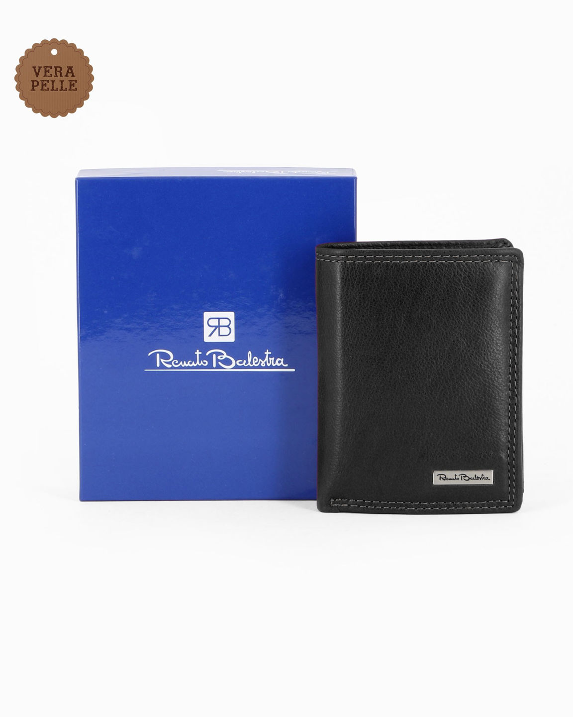 RENATO BALESTRA - Portafoglio nero in VERA PELLE da uomo con pattina e ribaltina interna