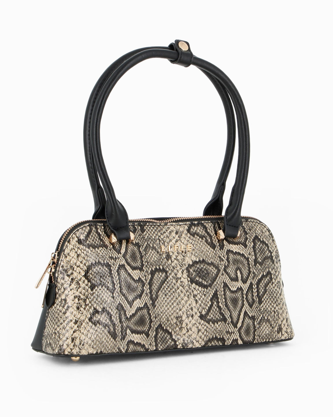 RIFLE - Borsa a due manici nera con parte frontale pitonata