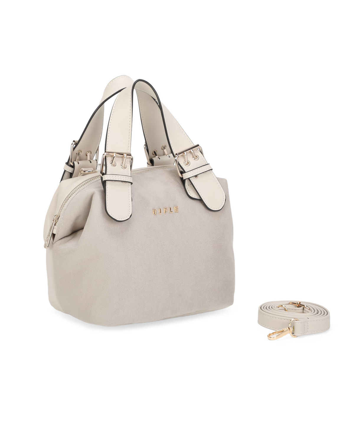 RIFLE - Borsa a mano beige con parte frontale scamosciata e fibbie sui manici, tracolla removibile