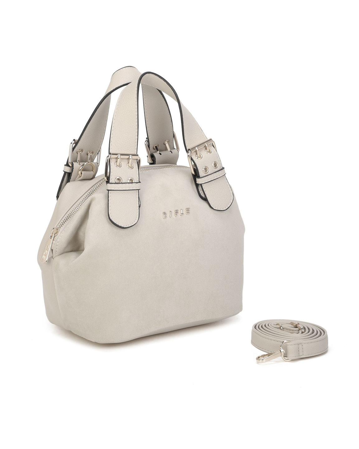 RIFLE - Borsa a mano beige con parte frontale scamosciata e fibbie sui manici, tracolla removibile