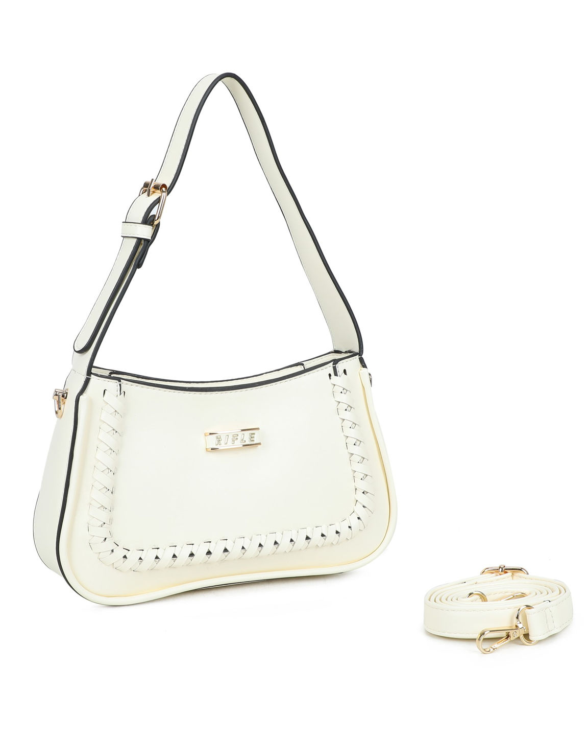 RIFLE - Borsa a spalla avorio con dettaglio intreccio frontale, tracolla removibile