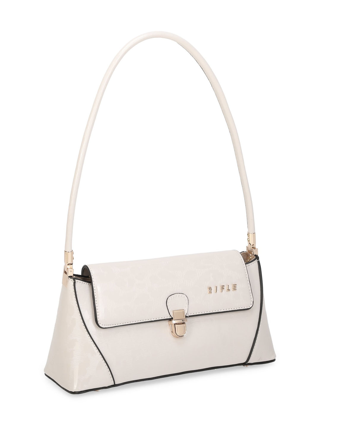 RIFLE - Borsa a spalla bianca lucida con patta e chiusura a incastro