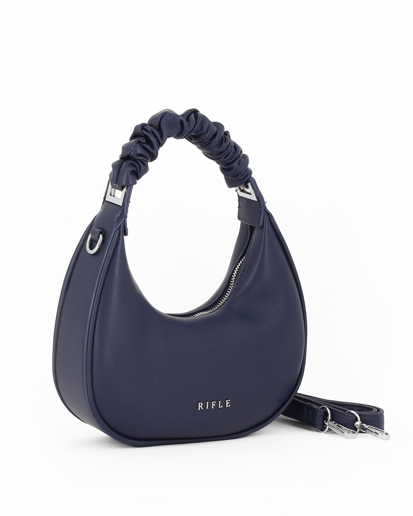 RIFLE - Borsa a spalla blu con manico arricciato, tracolla removibile