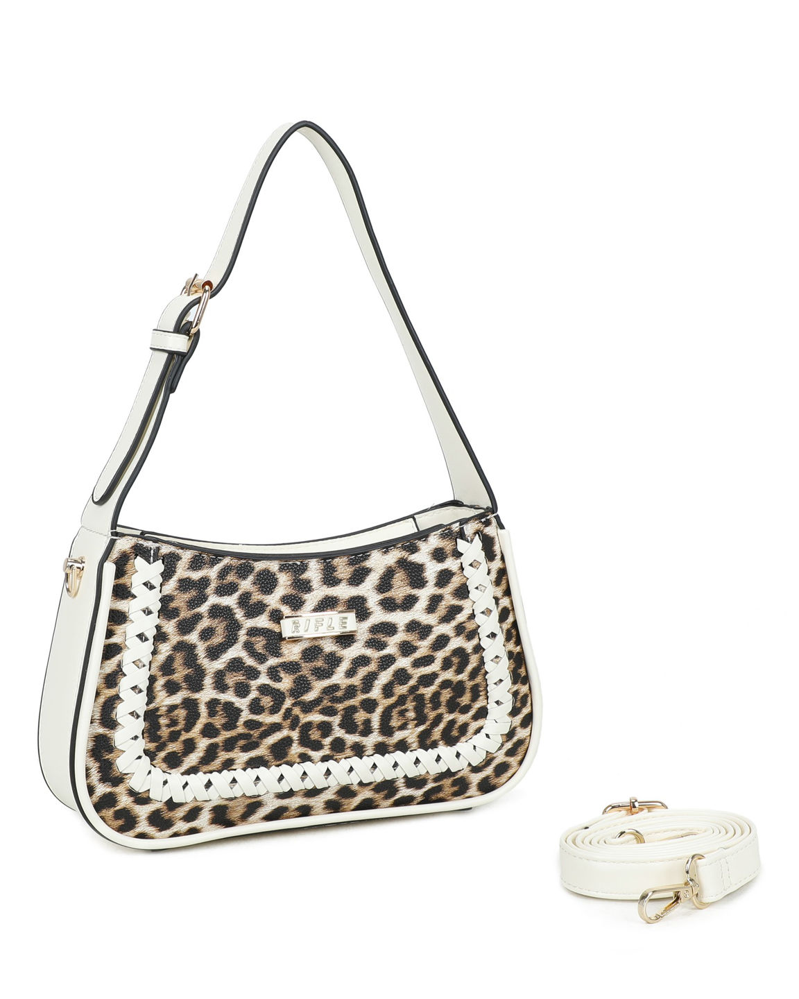 RIFLE - Borsa a spalla animalier con dettaglio intreccio frontale, tracolla removibile