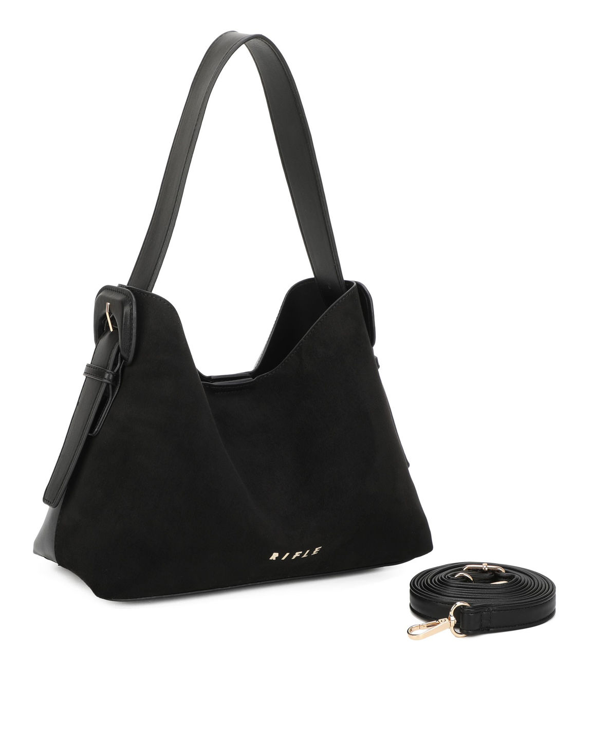 RIFLE - Borsa a spalla nera con parte frontale scamosciata, tracolla removibile
