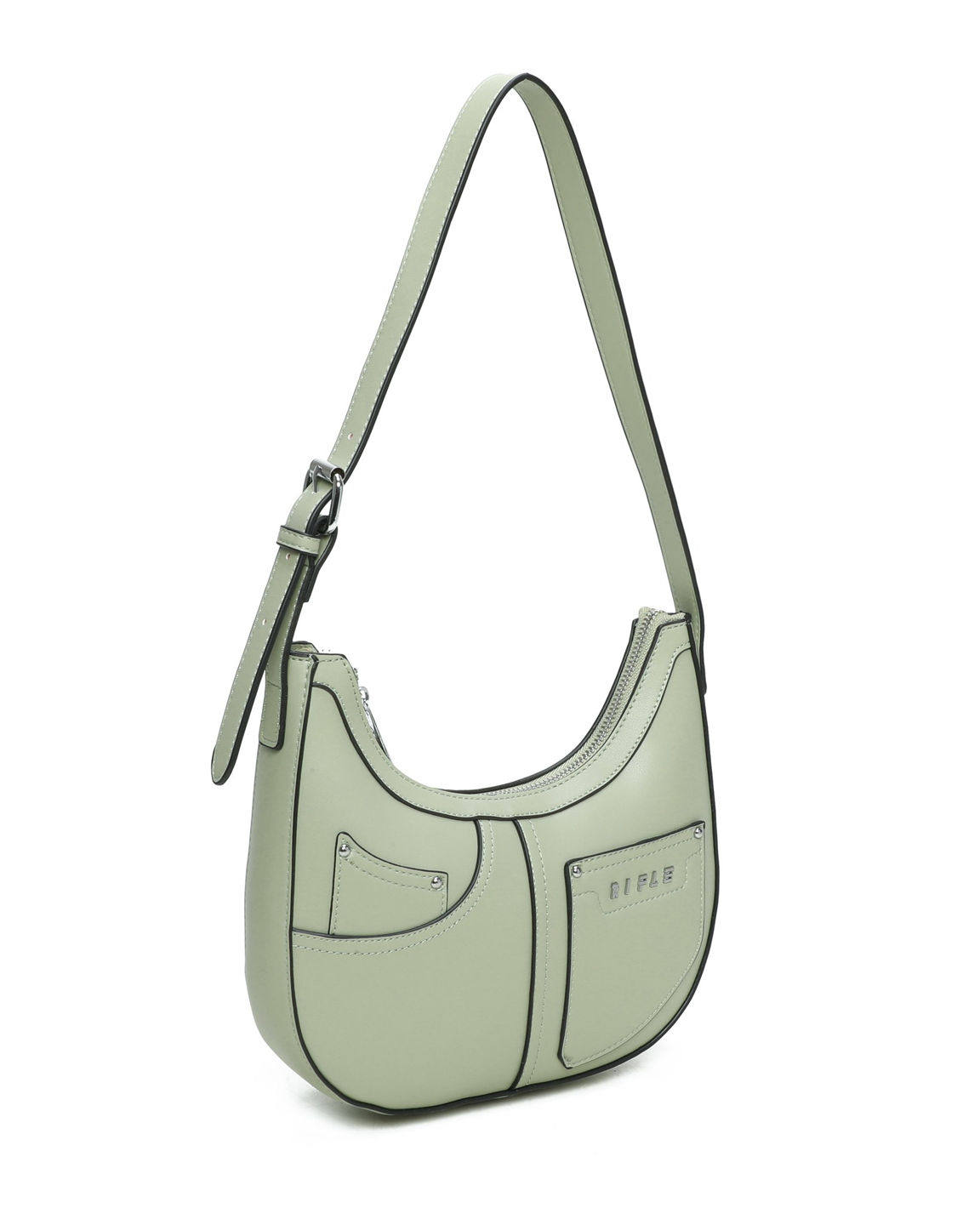 RIFLE - Borsa a spalla verde salvia con tasca posteriore e finte tasche frontali
