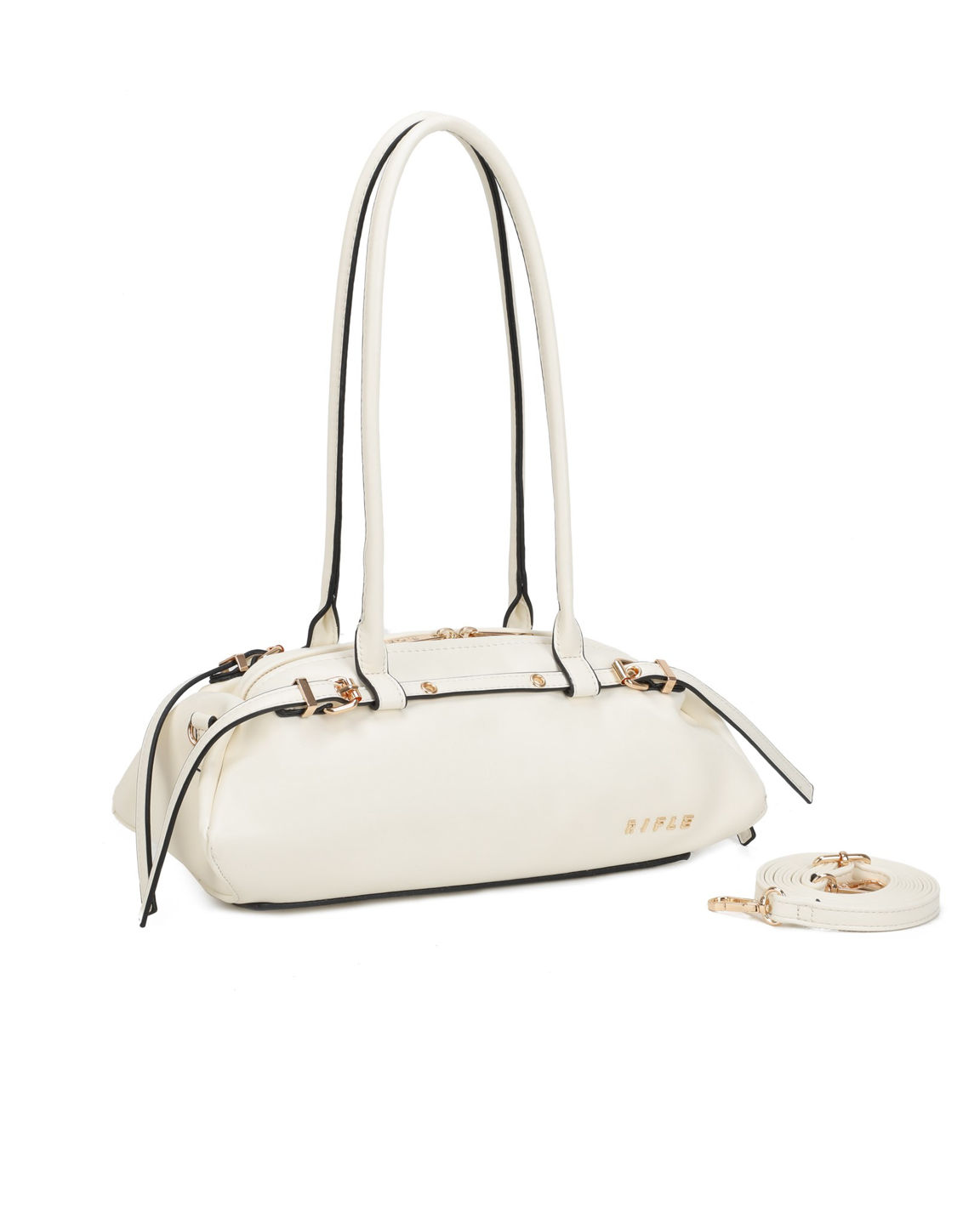 RIFLE - Borsa baguette a spalla avorio con fibbie, tracolla removibile