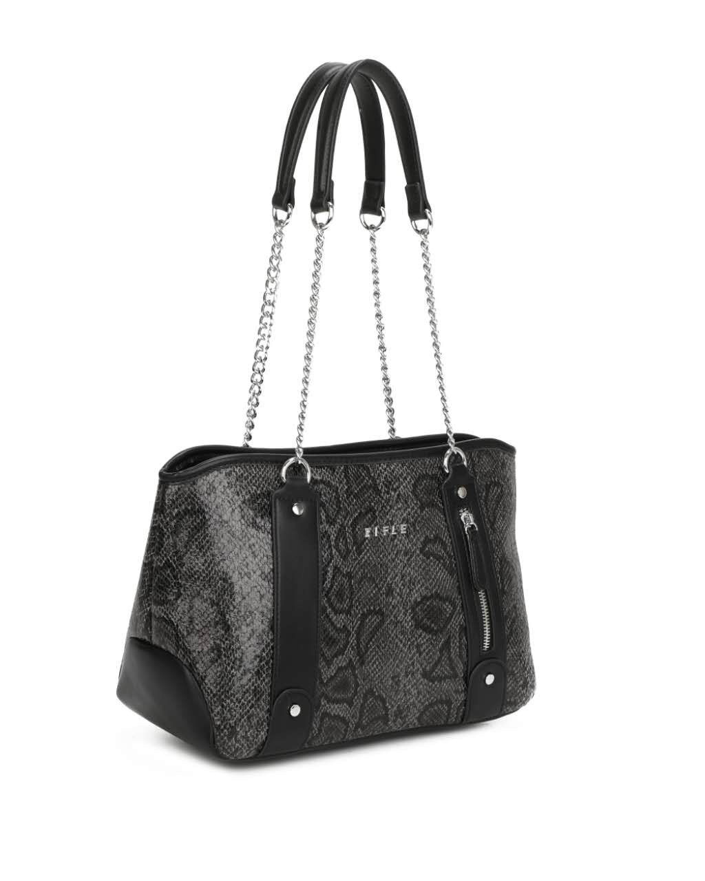 RIFLE - Borsa due manici nera pitonata