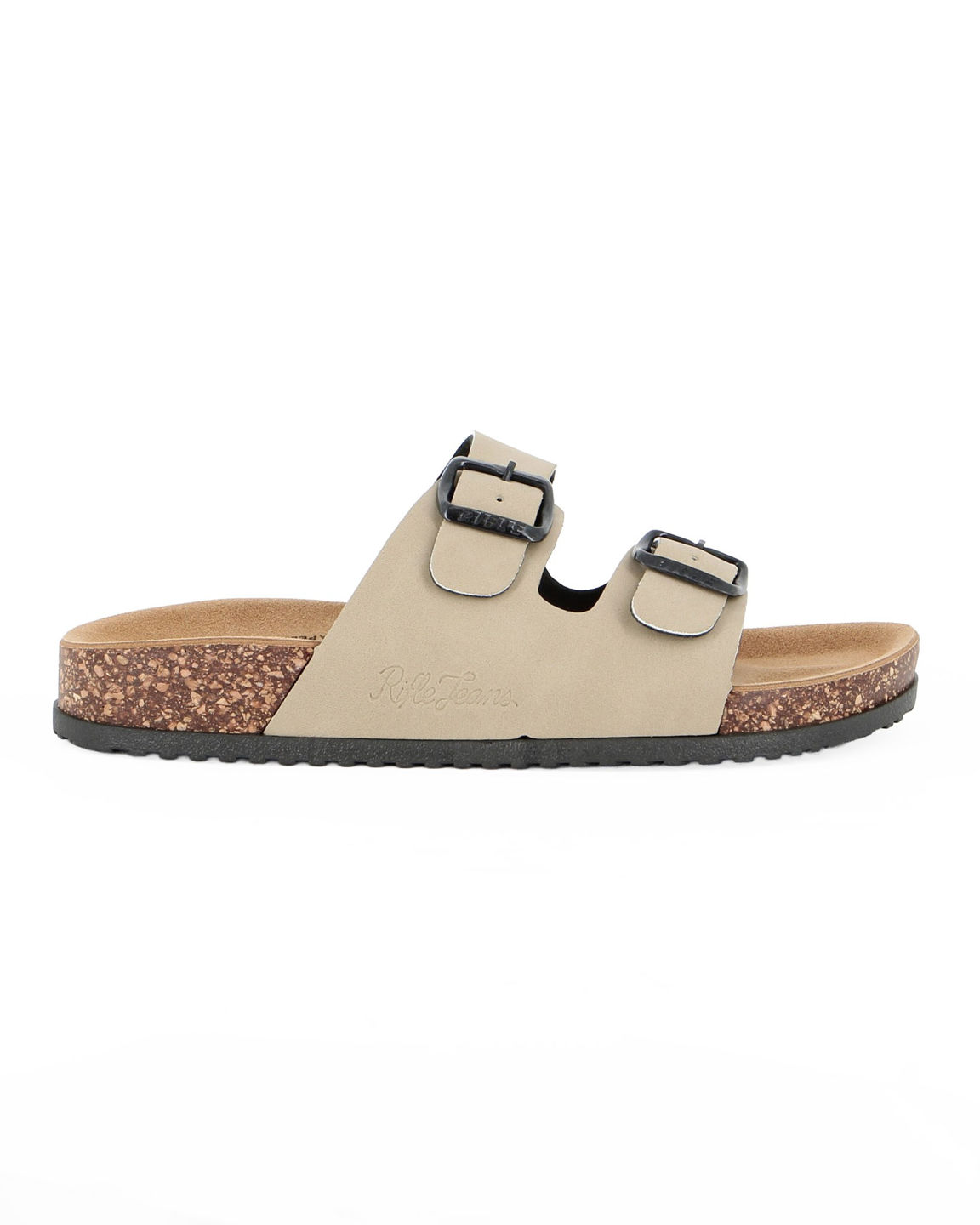 RIFLE - Ciabatta beige con doppia fibbia e sottopiede in VERA PELLE