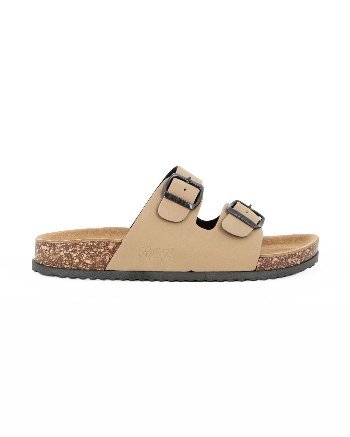 RIFLE - Ciabatta beige con doppia fibbia e sottopiede in VERA PELLE
