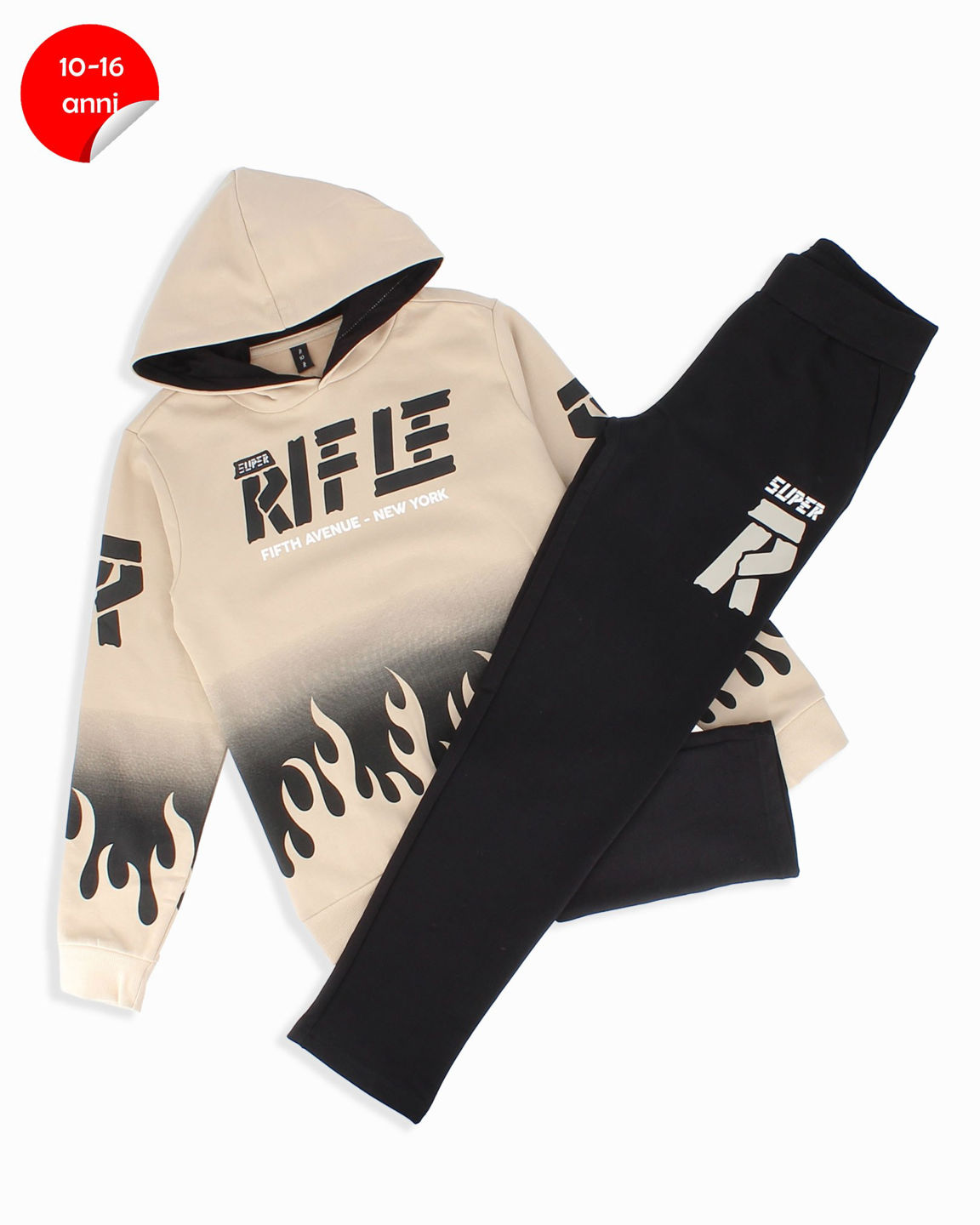 RIFLE - COMPLETO TUTA DA RAGAZZO FELPA PANNA CON CAPPUCCIO