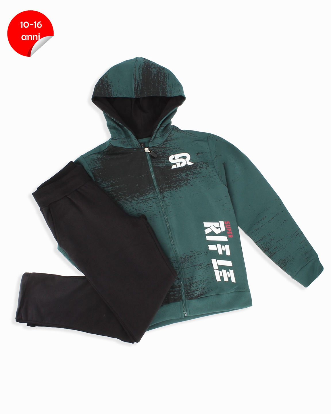 RIFLE - COMPLETO TUTA DA RAGAZZO FELPA VERDE CON CAPPUCCIO