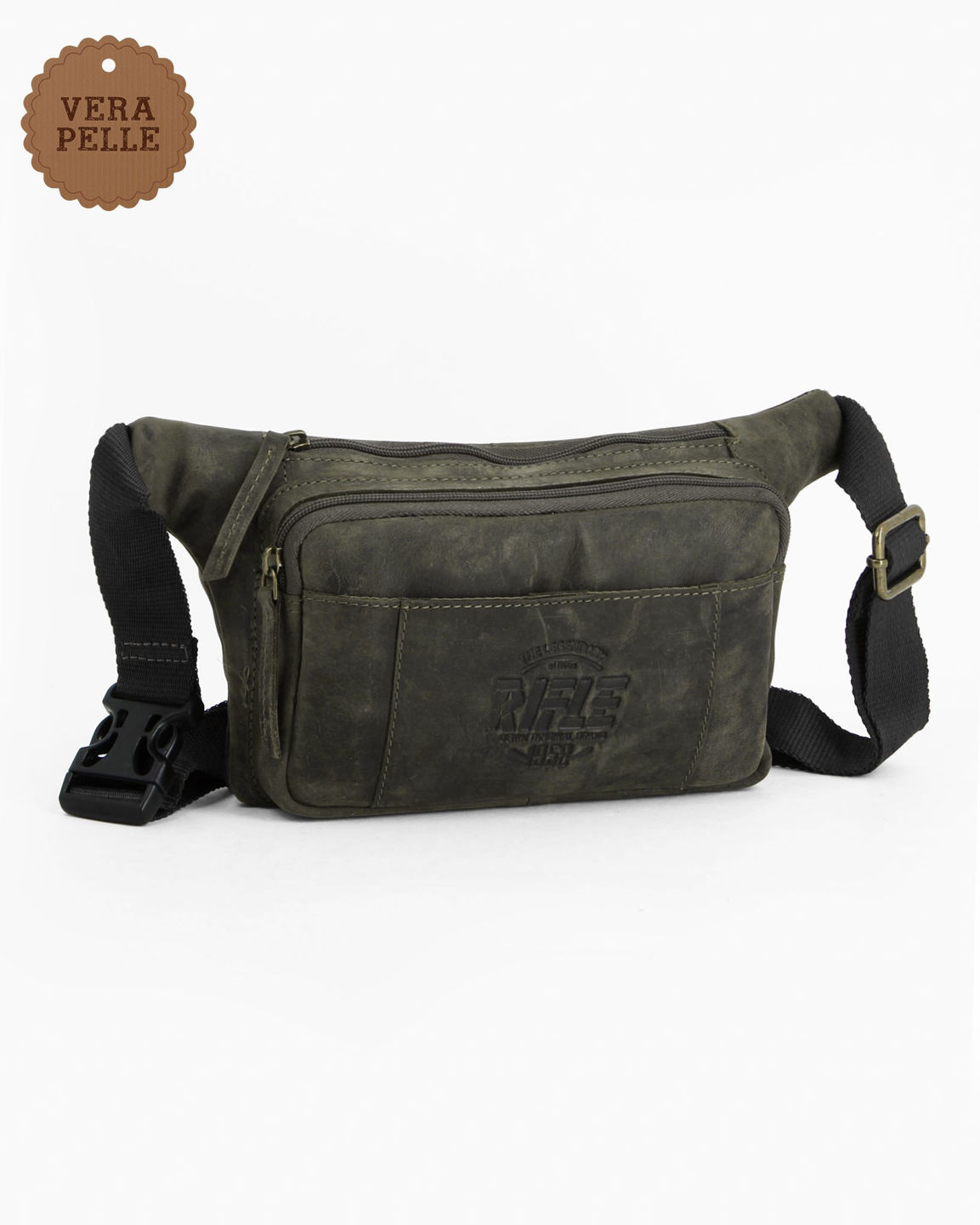 Due tasche frontali di cui una con chiusura a zip e una con chiusura a clip