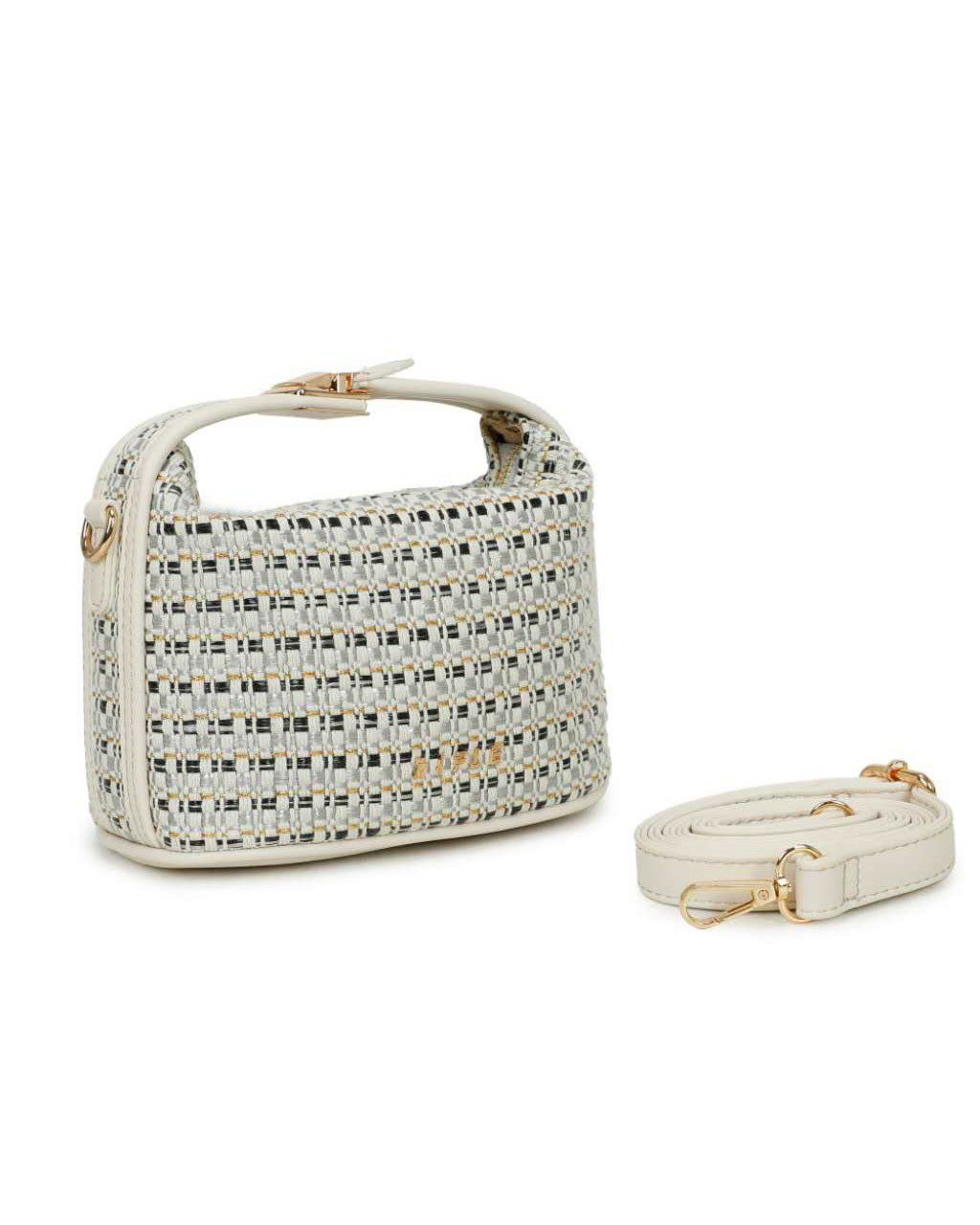 RIFLE - Minibag bianca con chiusura a incastro sul manico e trama a intreccio, tracolla removibile