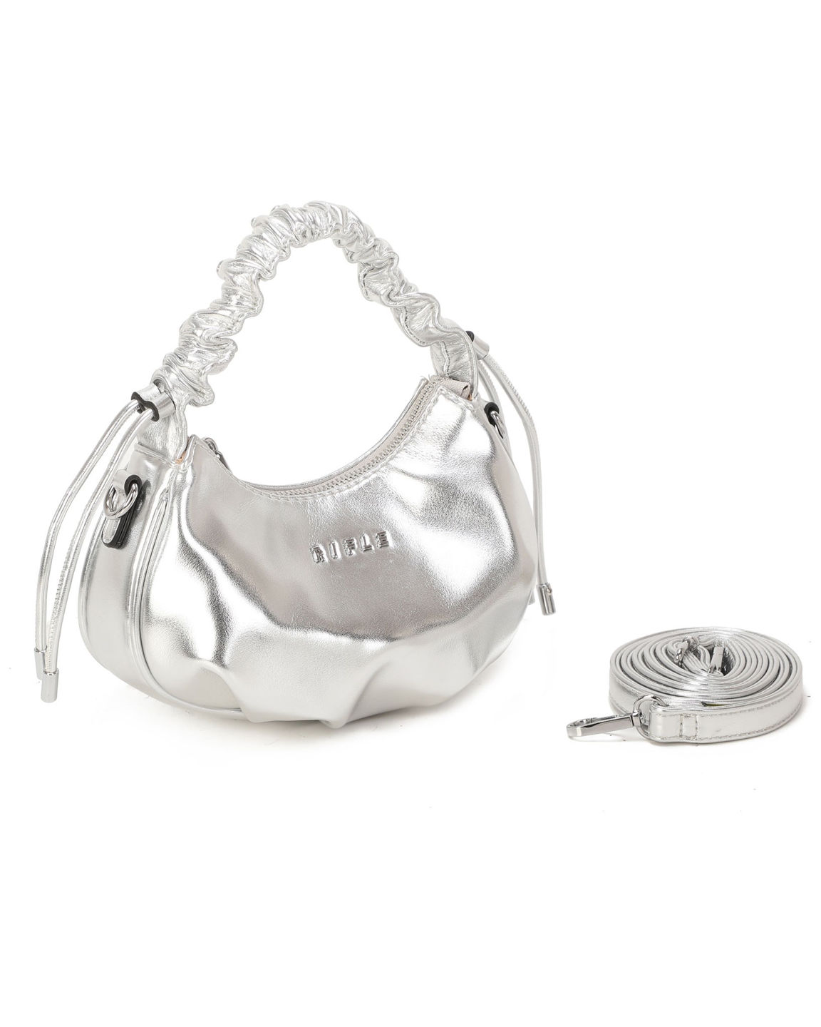 RIFLE - Minibag argento con manico arricciato, tracolla removibile
