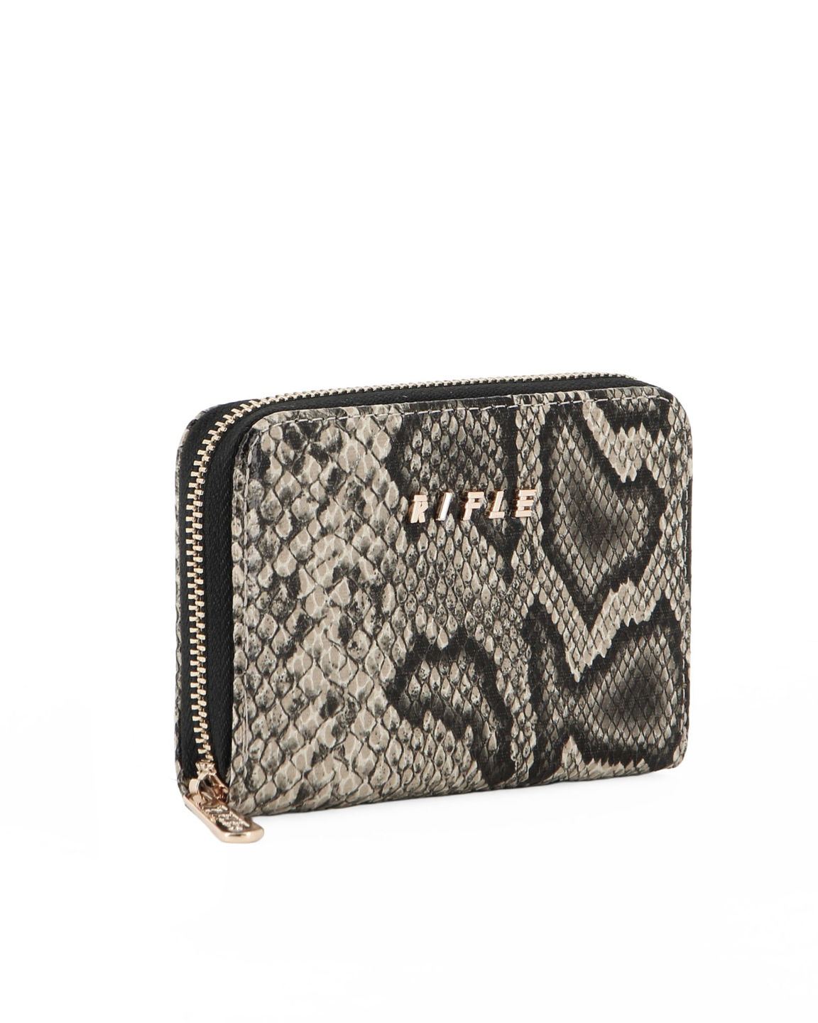 RIFLE - Portacarte taupe pitonato con chiusura a zip
