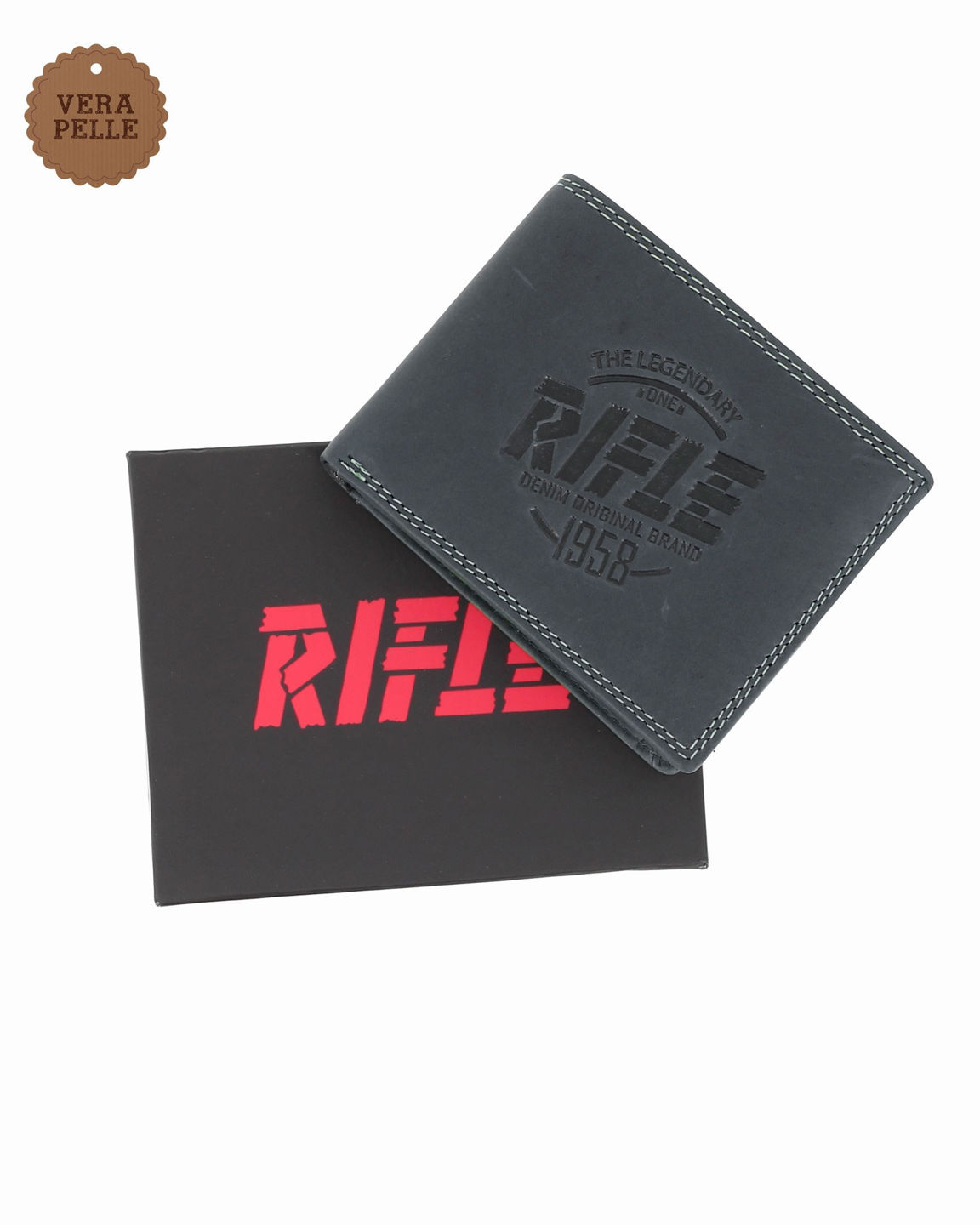 RIFLE - Portafoglio testa moro da uomo in VERA PELLE con ribaltina interna