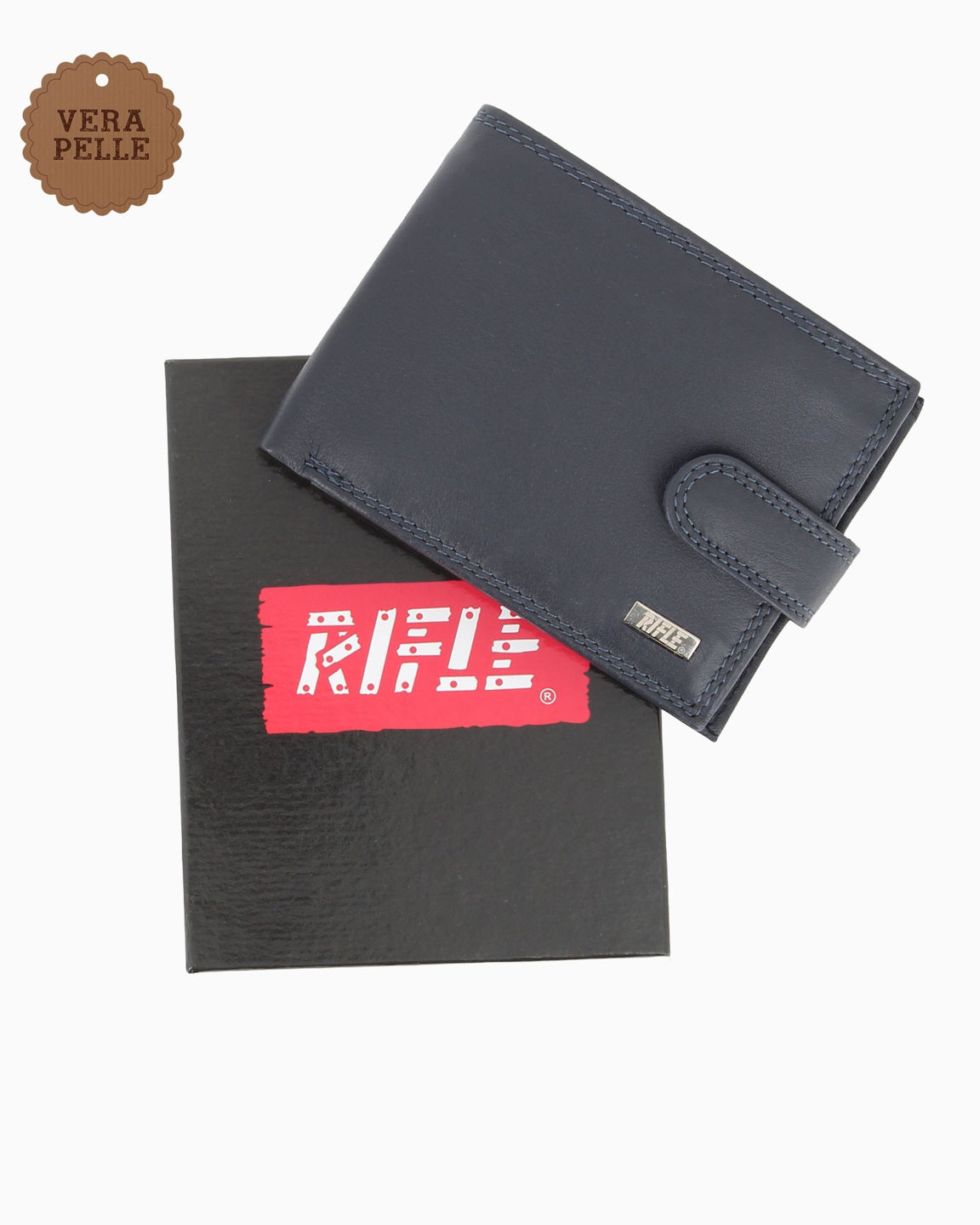 RIFLE - Portafoglio blu in VERA PELLE con pattina e ribaltina