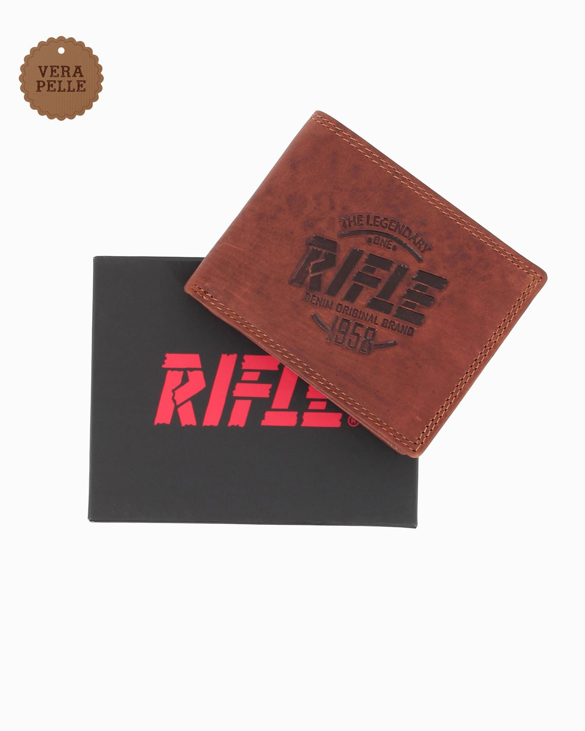 RIFLE - Portafoglio cognac da uomo in VERA PELLE con ribaltina interna