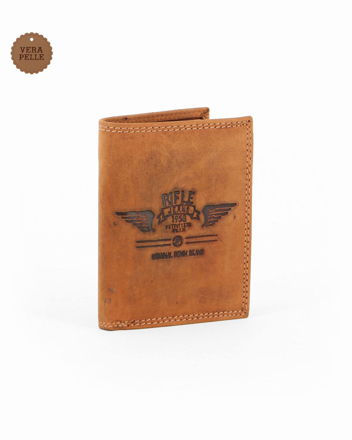 RIFLE - Portafoglio cuoio in VERA PELLE da uomo con pattina e ribaltina interna