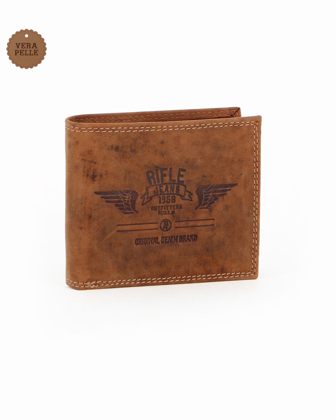 RIFLE - Portafoglio cuoio in VERA PELLE da uomo con ribaltina interna