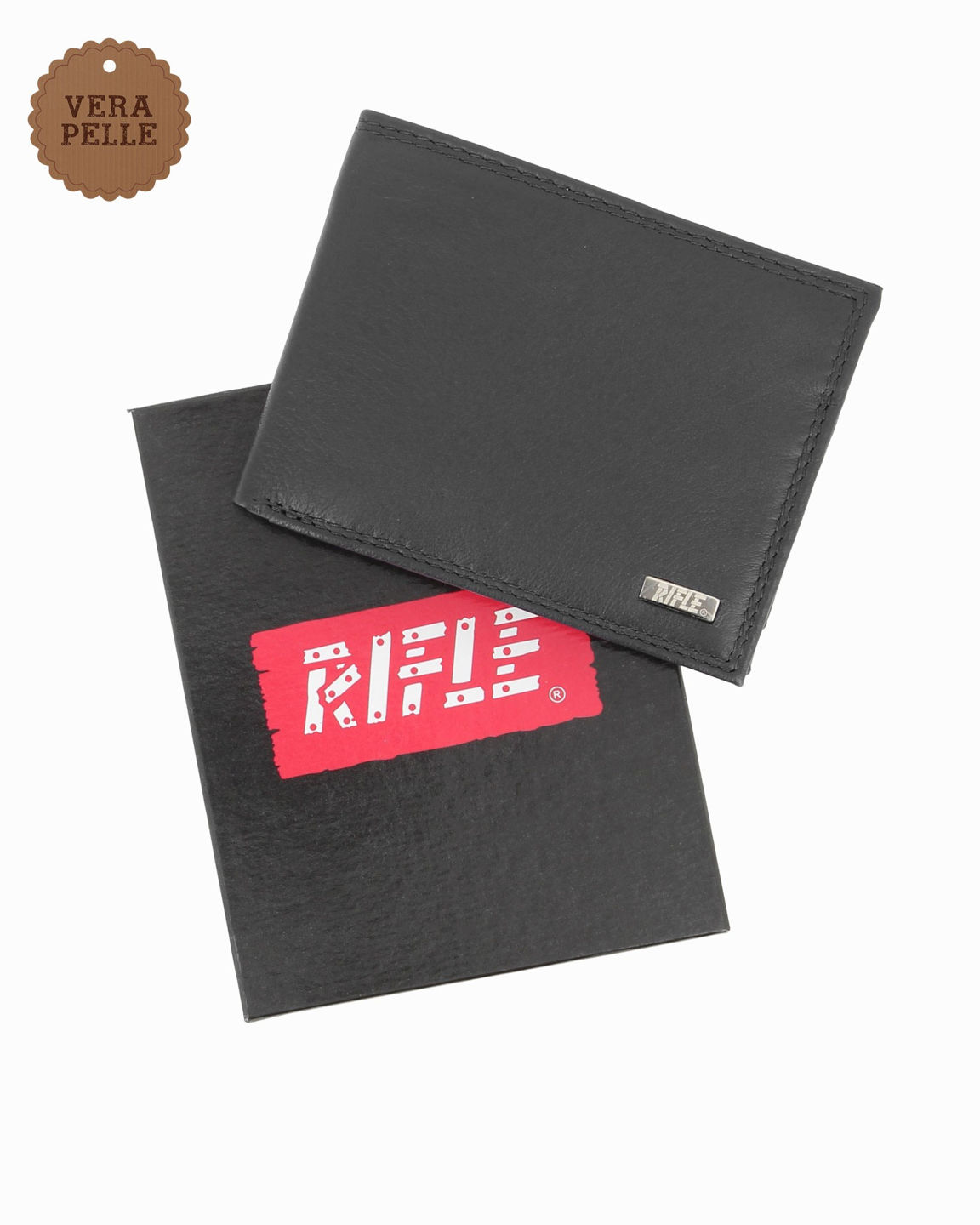 RIFLE - Portafoglio nero in VERA PELLE con ribaltina interna