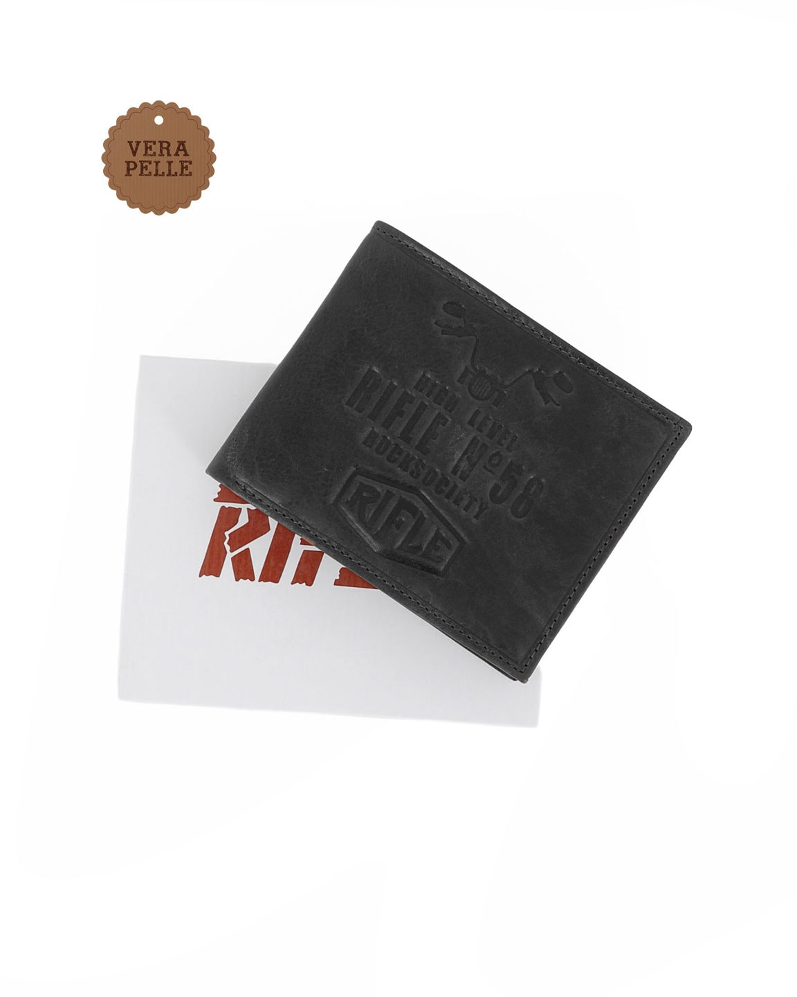 RIFLE - Portafoglio nero in VERA PELLE da uomo con ribaltina interna
