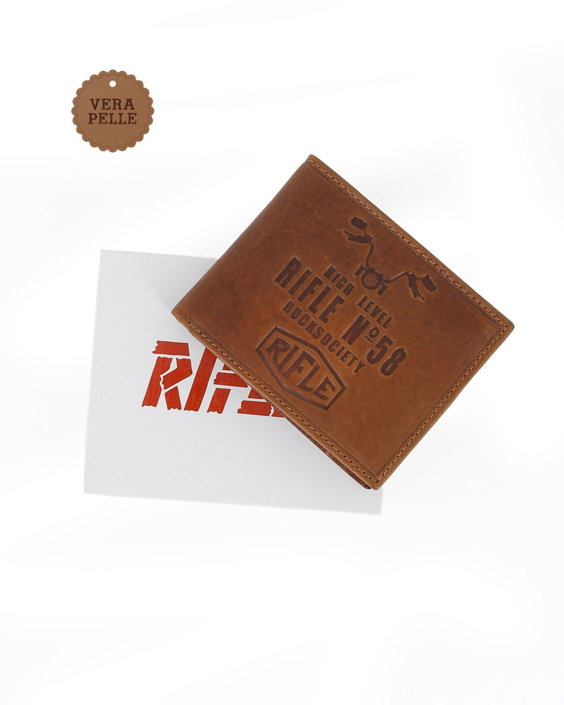 RIFLE - Portafoglio tan in VERA PELLE da uomo con ribaltina interna