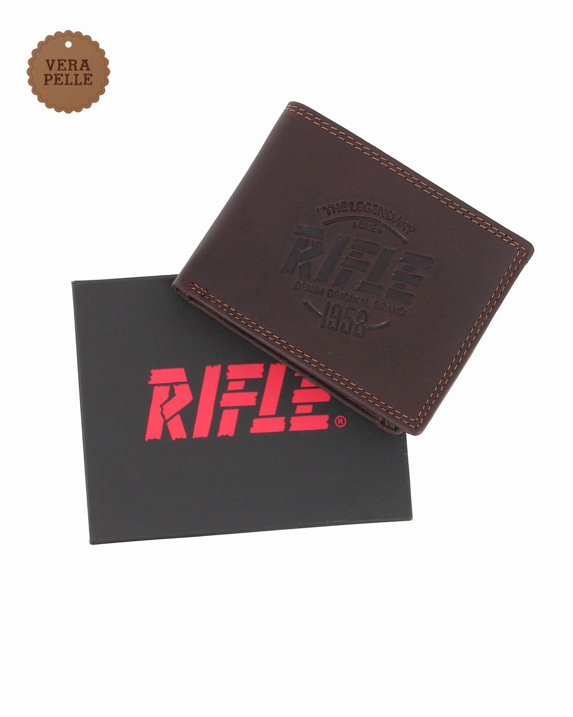 RIFLE - Portafoglio testa moro da uomo in VERA PELLE con ribaltina interna