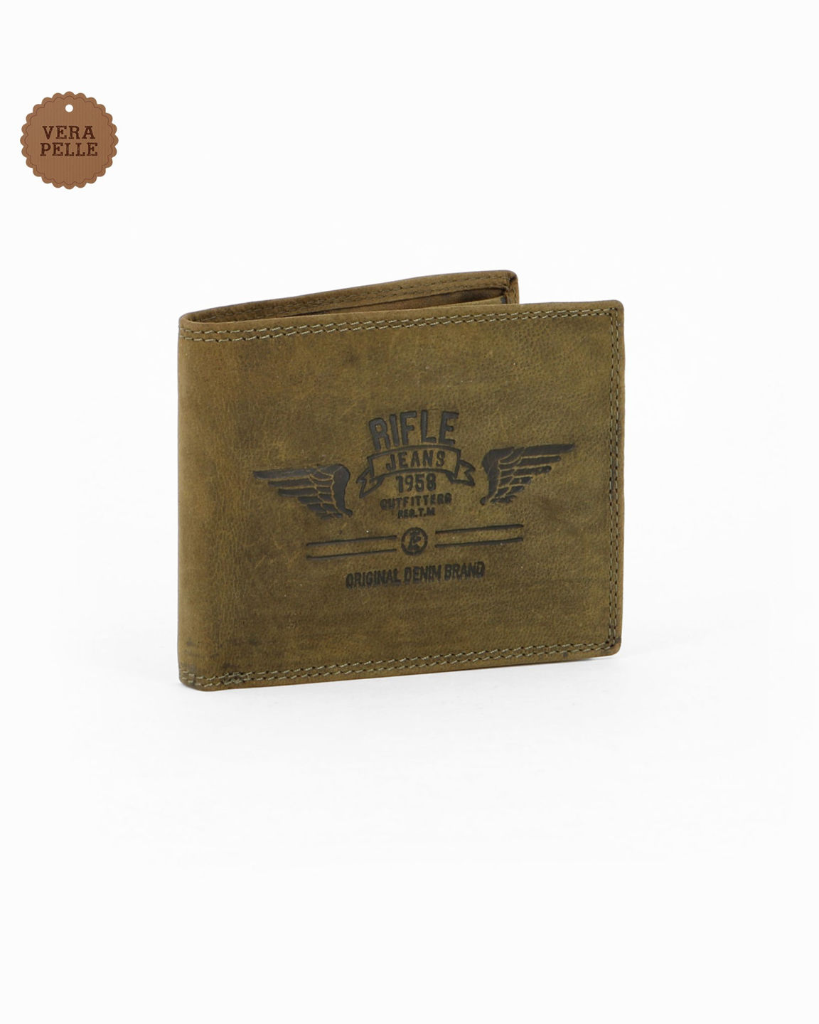 RIFLE - Portafoglio verde in VERA PELLE da uomo con ribaltina interna