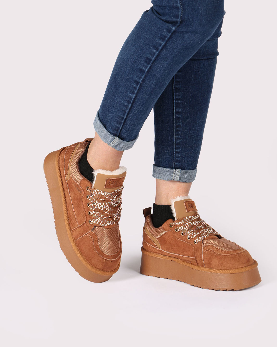 RIFLE - Scarpa cuoio scamosciata con lacci e pelliccia interna