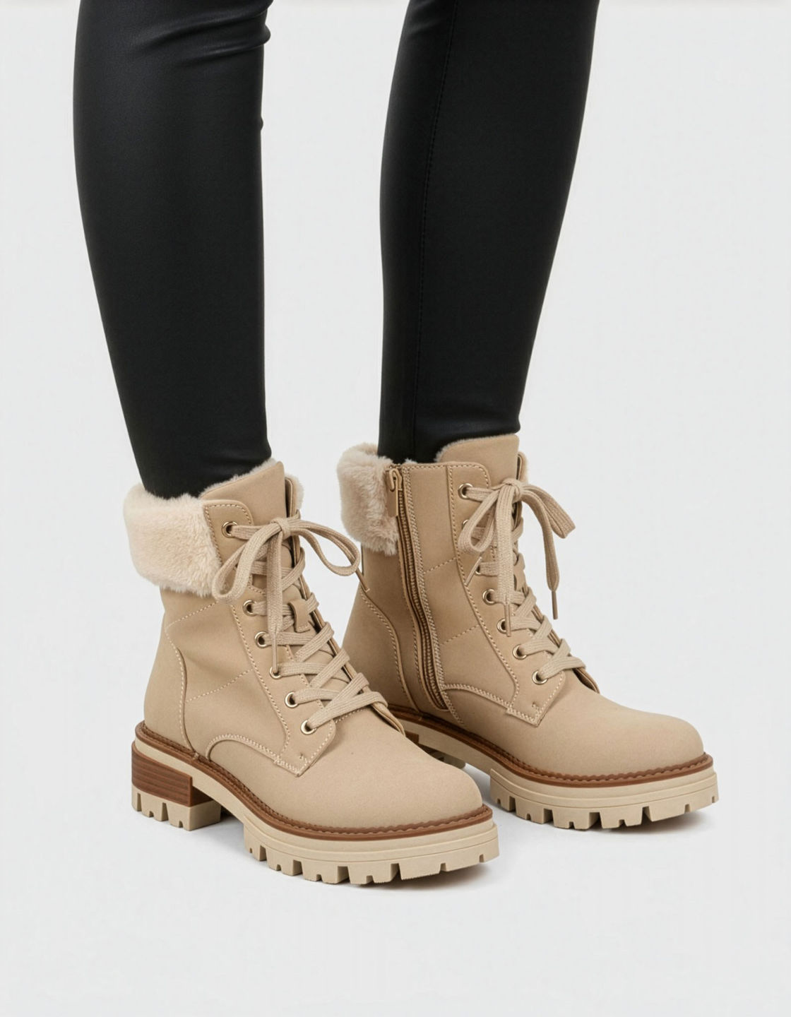 RIFLE - Scarponcino cappuccino da donna con lacci, zip laterale e pelliccia