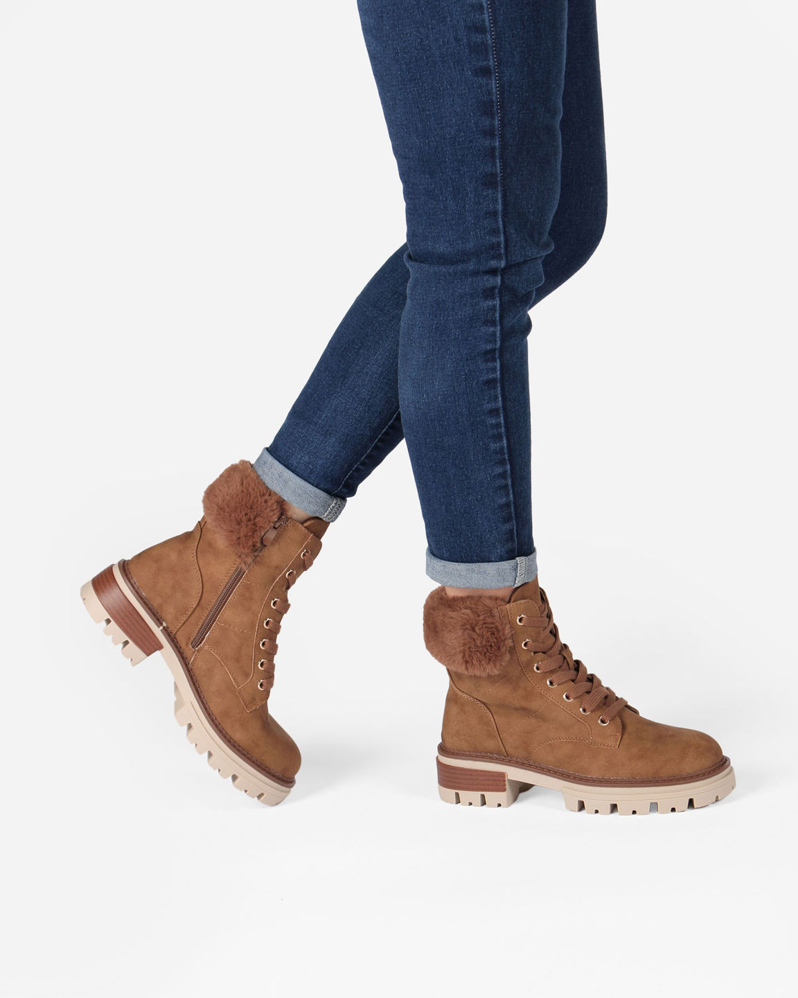 RIFLE - Scarponcino cappuccino da donna con lacci, zip laterale e pelliccia