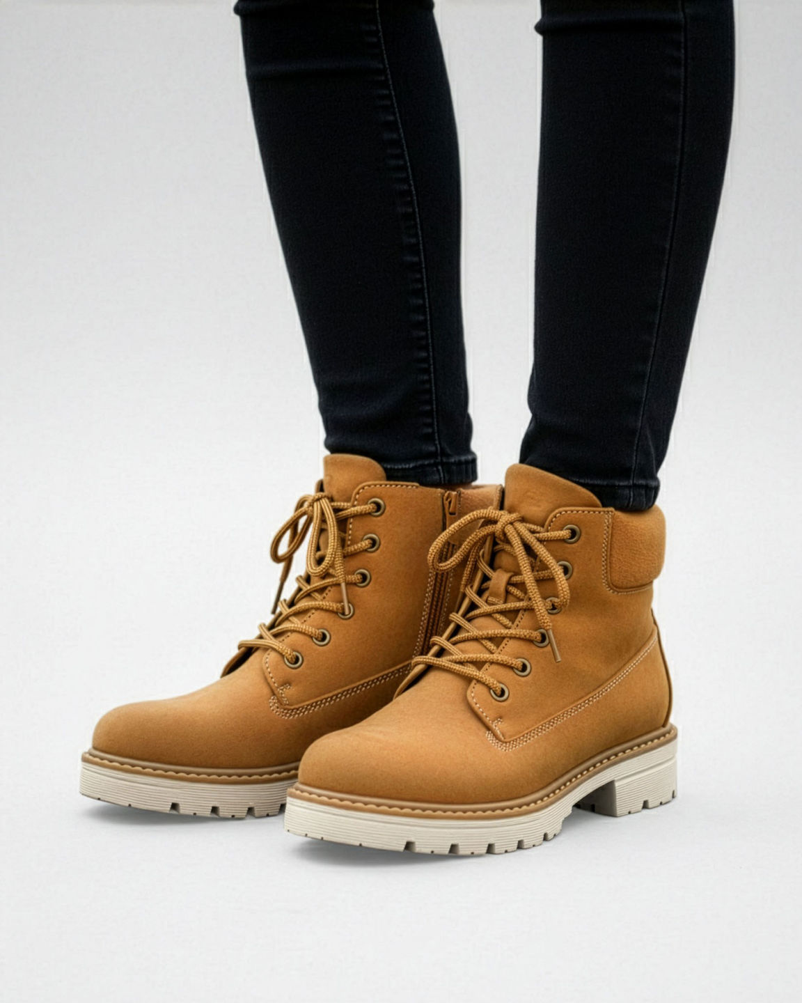 RIFLE - Scarponcino beige da donna con lacci e zip laterale