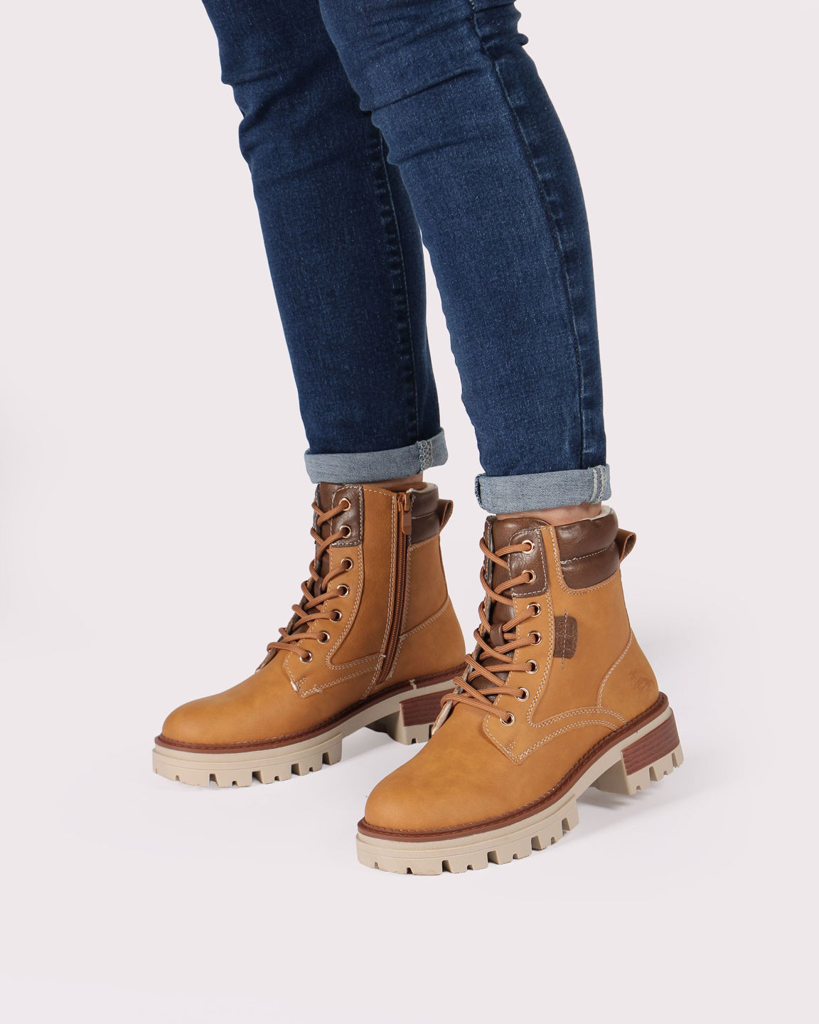 RIFLE - Scarponcino cuoio da donna con lacci, zip laterale e pelliccia interna
