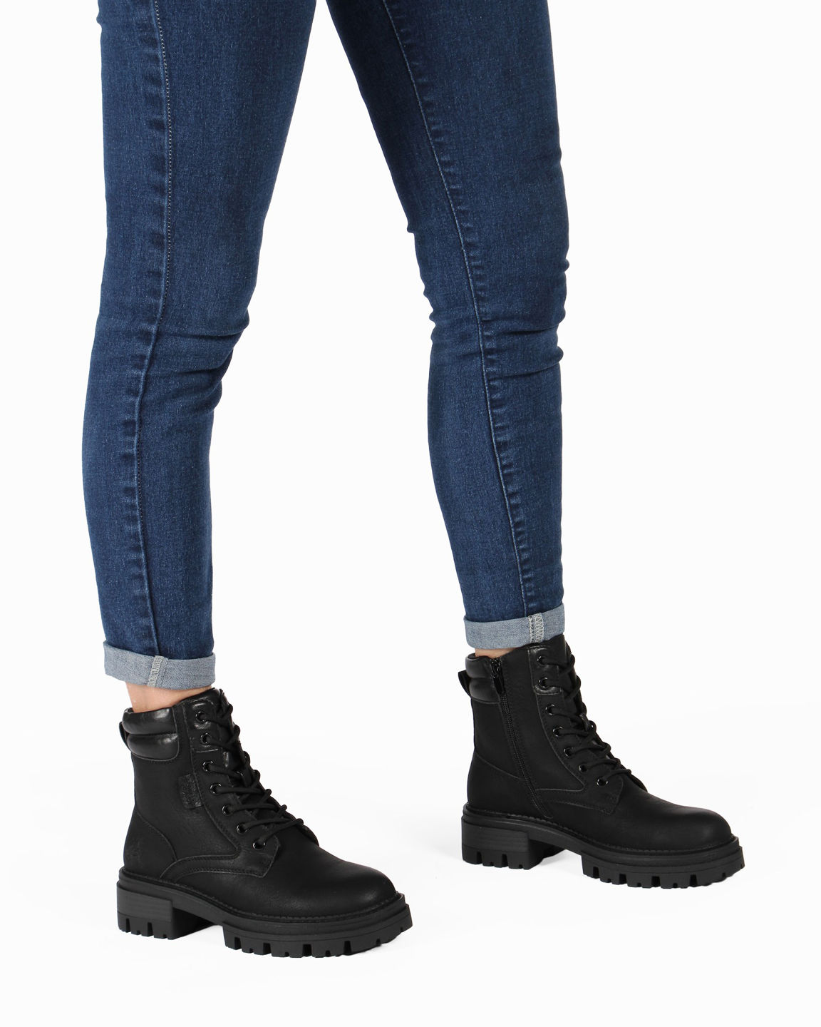 RIFLE - Scarponcino nero da donna con lacci, zip laterale e pelliccia interna