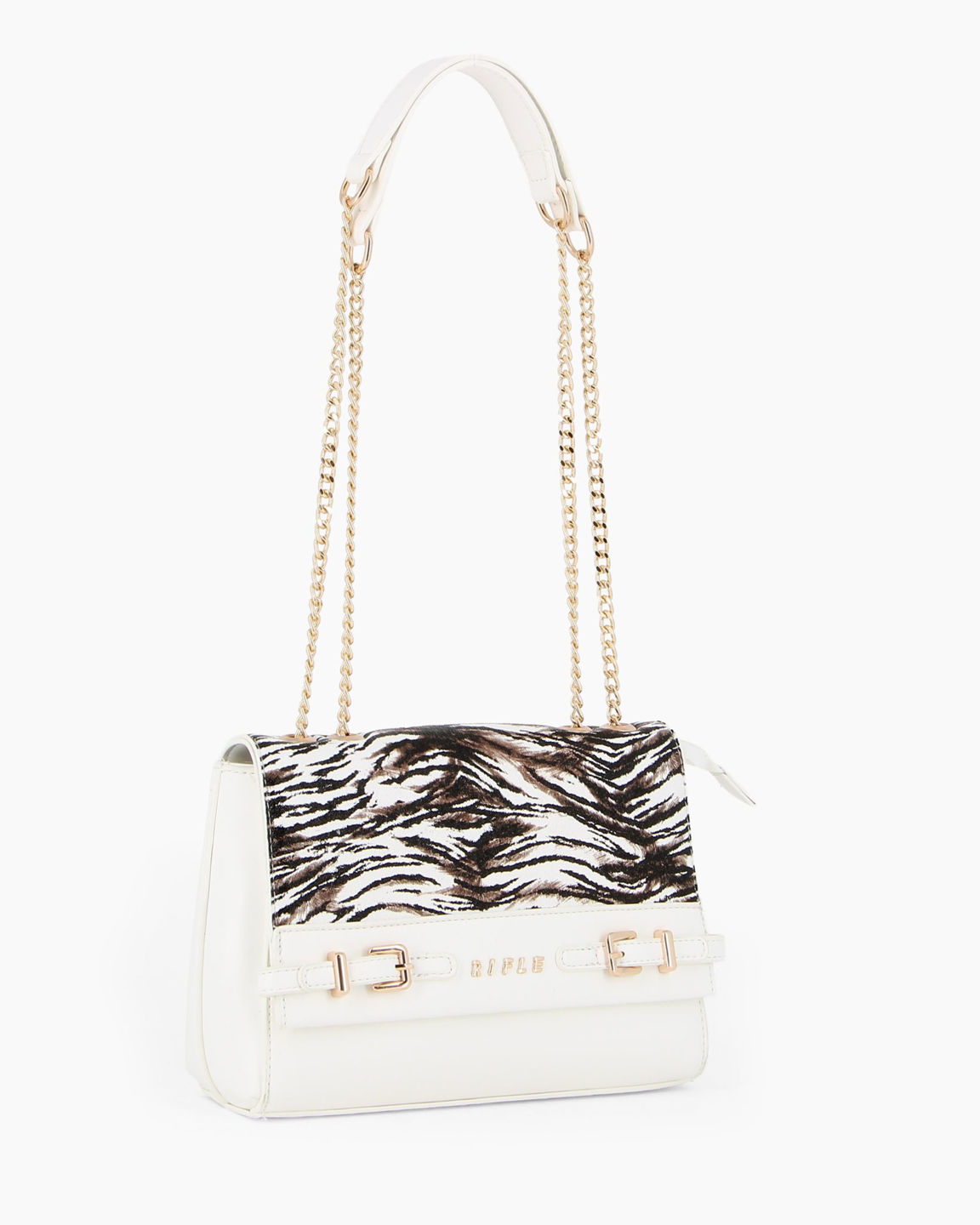 RIFLE - Tracolla bianca con dettaglio cinturini sulla patta animalier