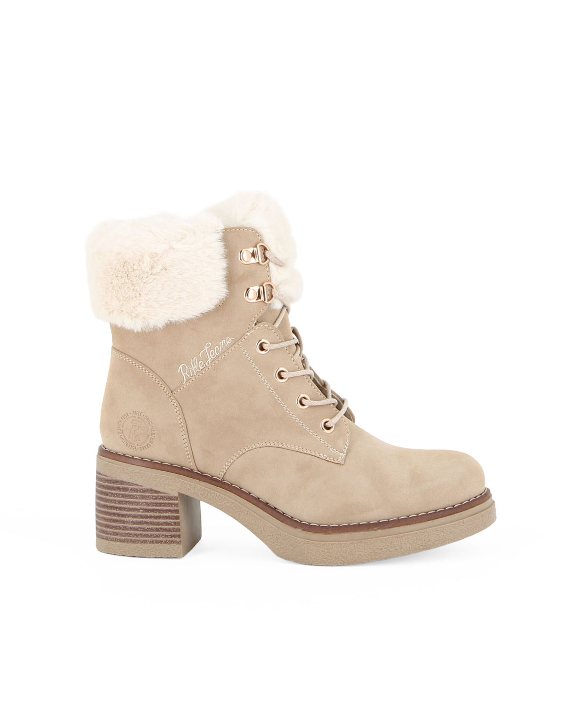 RIFLE - Tronchetto cappuccino scamosciato con pelliccia, lacci e zip laterale, tacco 6CM