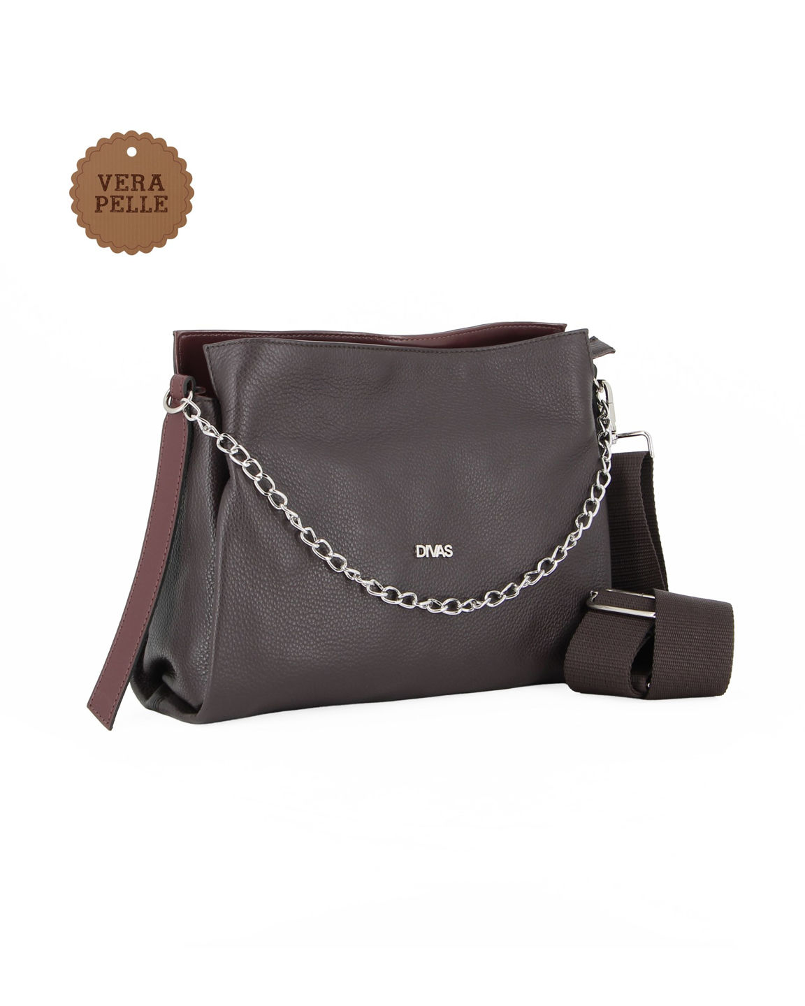 DIVAS - Borsa sacca argento in VERA PELLE con tracolla nastro - MADE IN ITALY